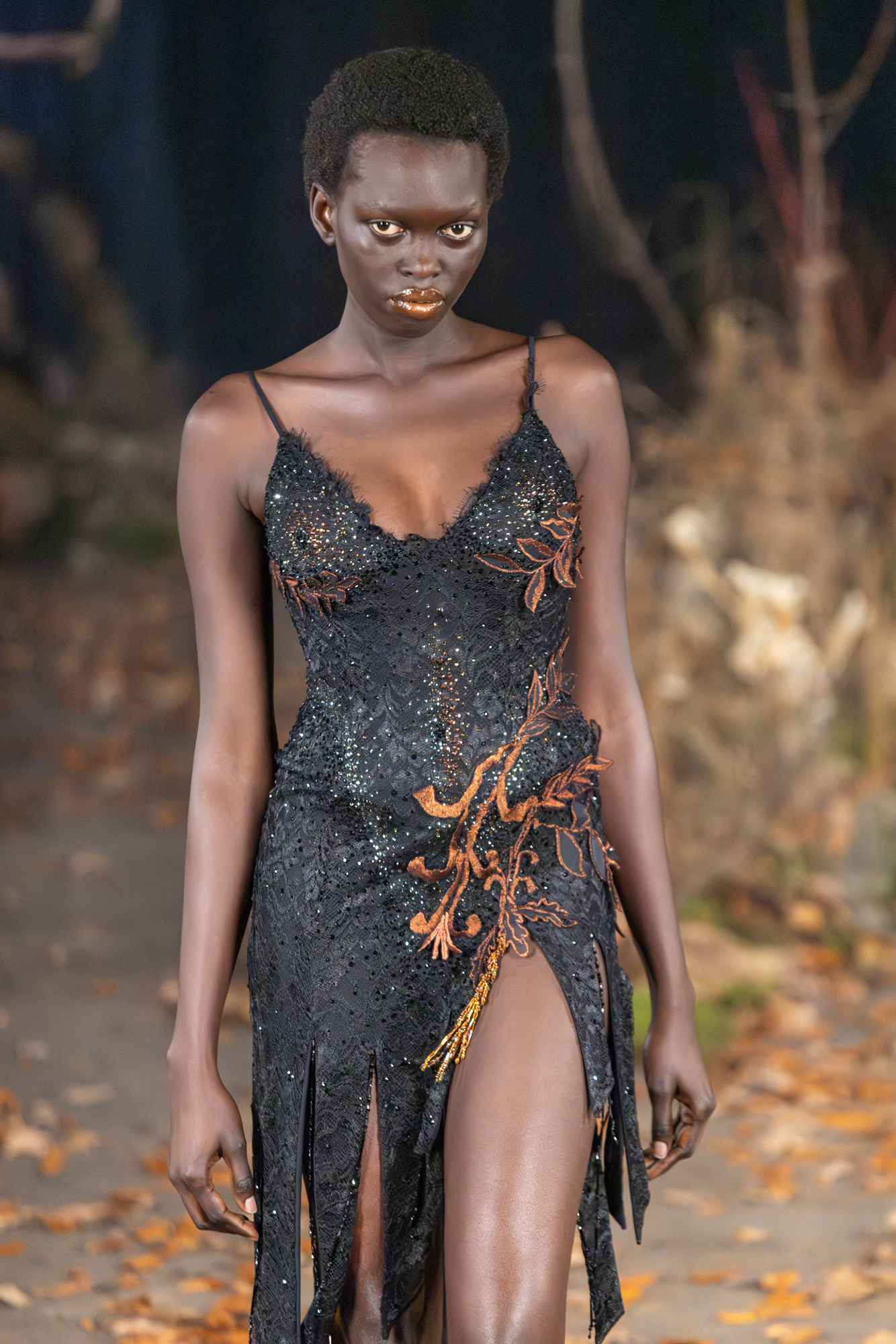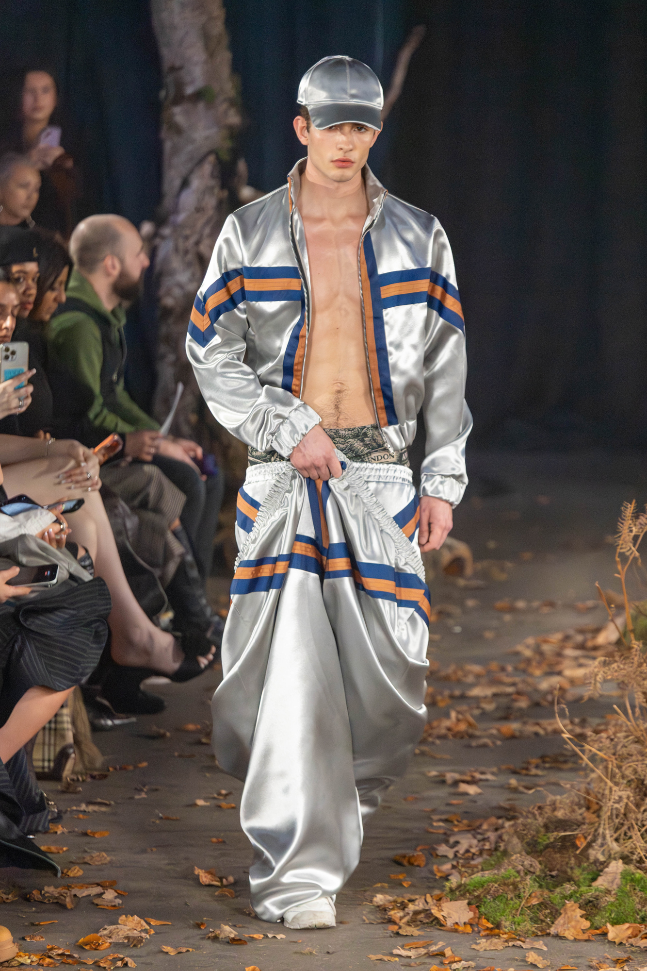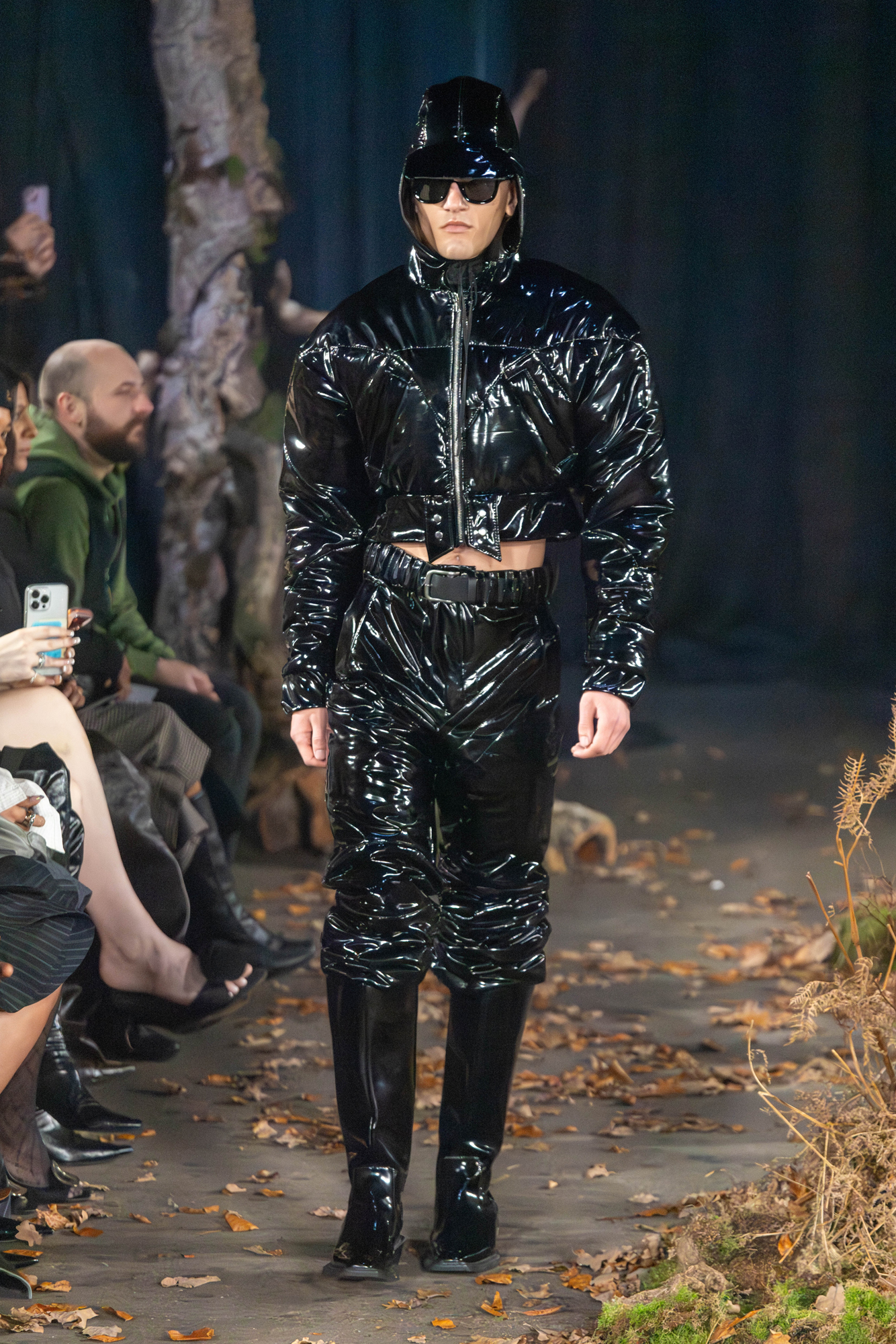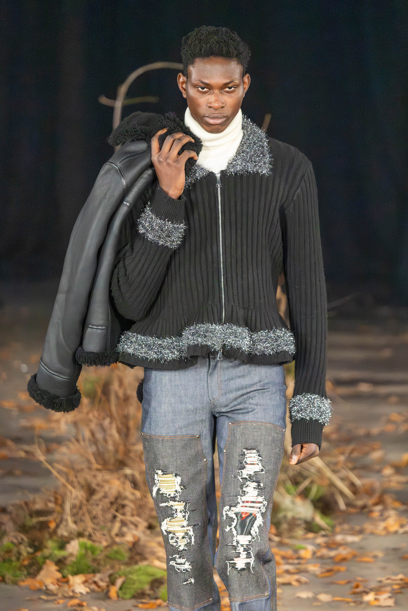 For AW26, AGRO Studio stepped into The Wanderer, a cast of characters caught between myth and motion. The runway was scattered with leaves and framed by tree trunks, giving the whole show a restless, slightly feral energy.