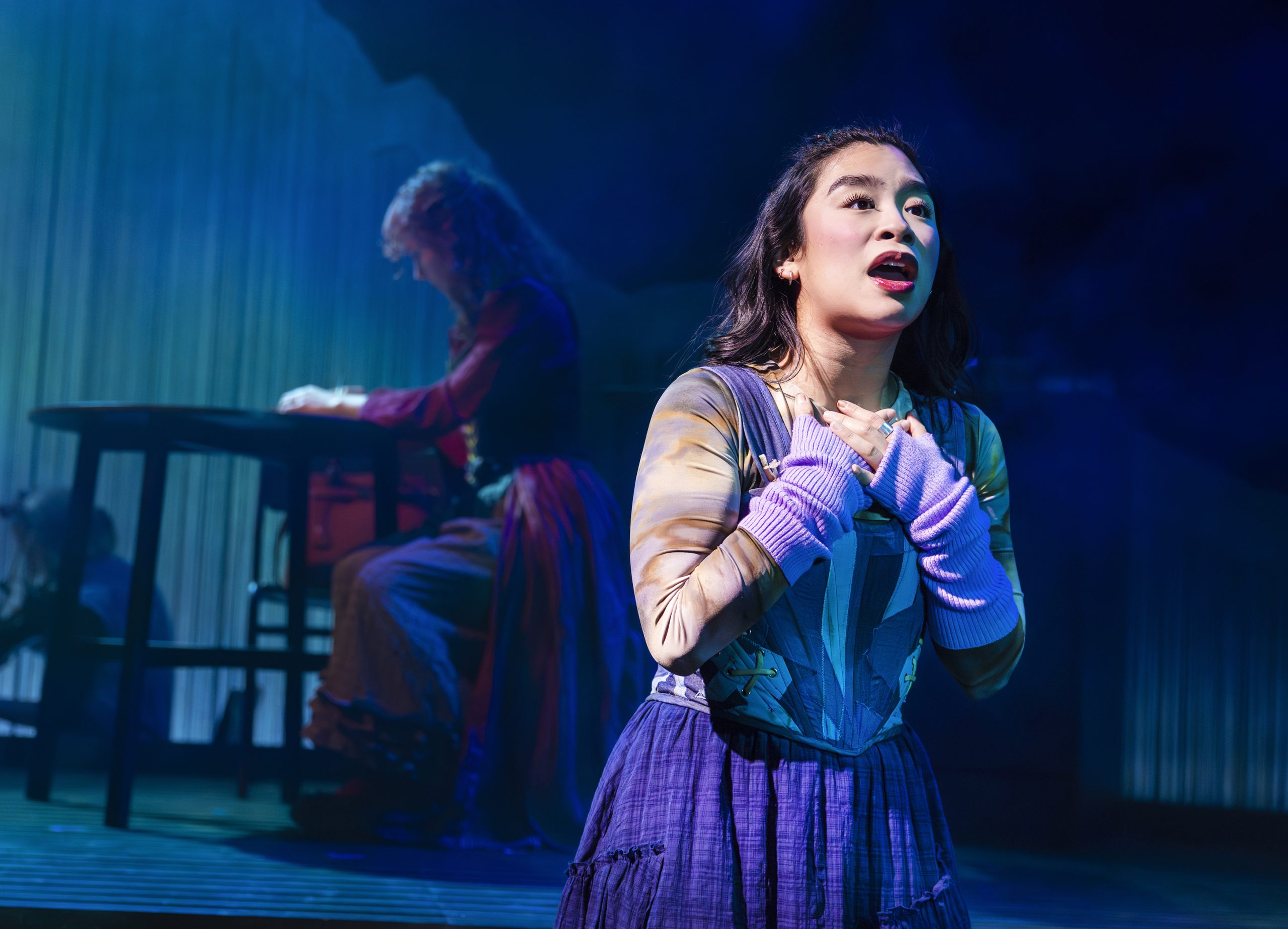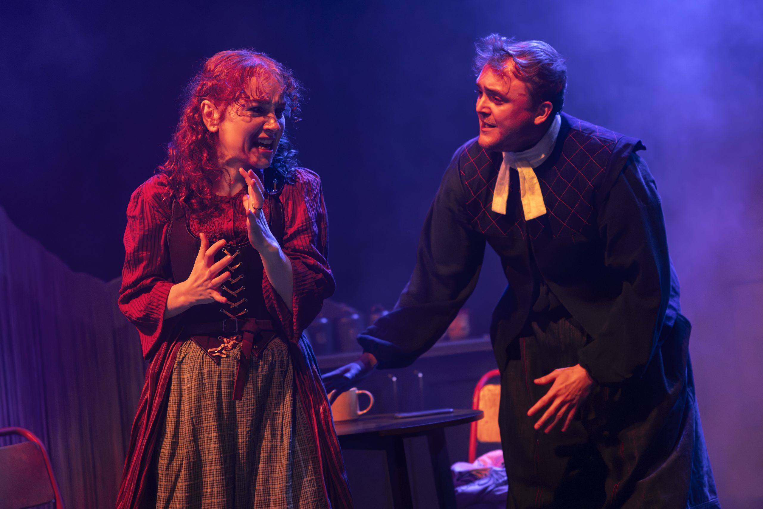 Cait lives in 17th-century Scotland and is played by Kirsty Findlay, who brings both power and vulnerability to the role. Cait is a minister’s wife in a world where her worth is defined almost entirely by her ability to produce a child. She has no real agency over her body or her future, and the pressure placed upon her is relentless. Findlay’s voice is extraordinary, and when she begins singing ‘The Four Marys’, a traditional ballad woven into the score, the theatre seems to hold its breath. It is one of those moments where time collapses and the centuries between us and her story feel paper thin.