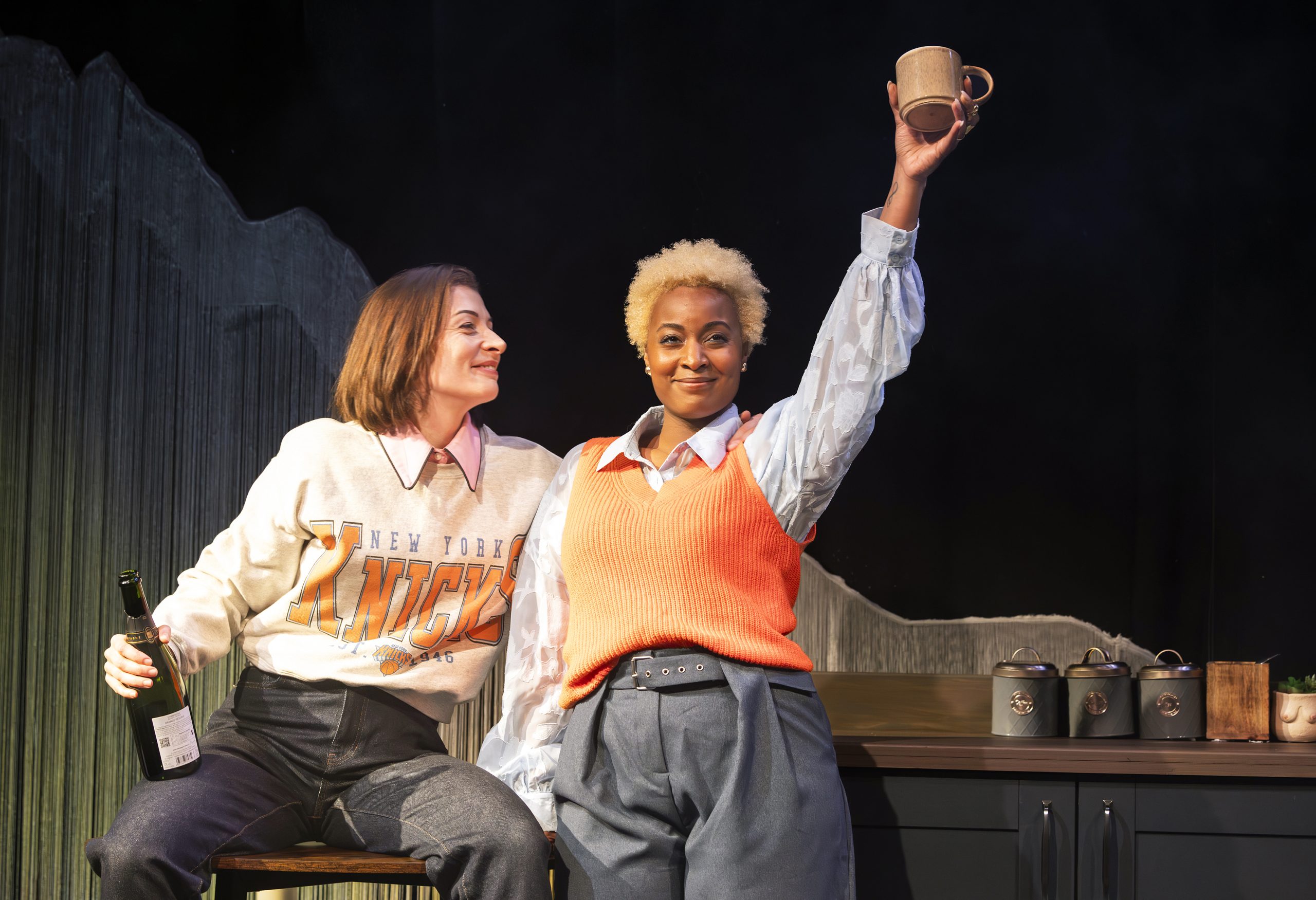 We then meet Sarah and Alix, a queer couple living in present-day New York, played by Frances McNamee and Sydney Sainté. Having just moved into a new apartment, they sing the gorgeous ‘Chosen Family’ – ‘you are the one I choose, you are my chosen family’ – a line that lands with particular resonance in a world where many of us feel closer to our friends than our relatives. Sitting ominously by the door is a large box, sent by Sarah’s late Aunt Betty – yes, the Betty from the Prologue. Sarah has been avoiding opening it. When she finally does, she discovers tapes recorded by Betty, telling the stories of two young women from their family’s past: Cait and Jean.