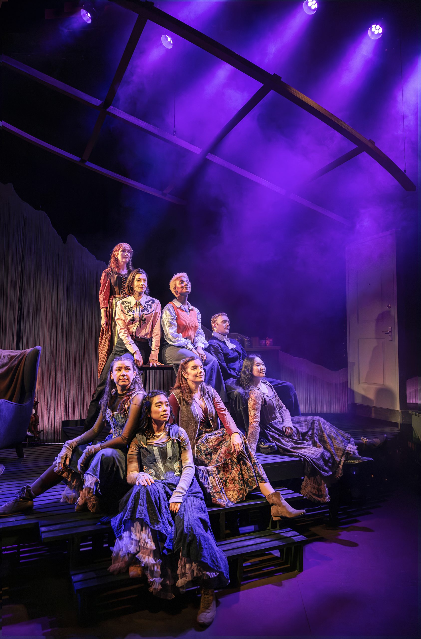 Then the beat starts, and the cast of eight – seven women and one man – arrive, dressed across multiple eras, moving and singing with such passion and intention that the audience is instantly pulled into the world of the story. I’m not exaggerating when I say my foot started tapping from the very first beats, and glancing around, I was far from alone.