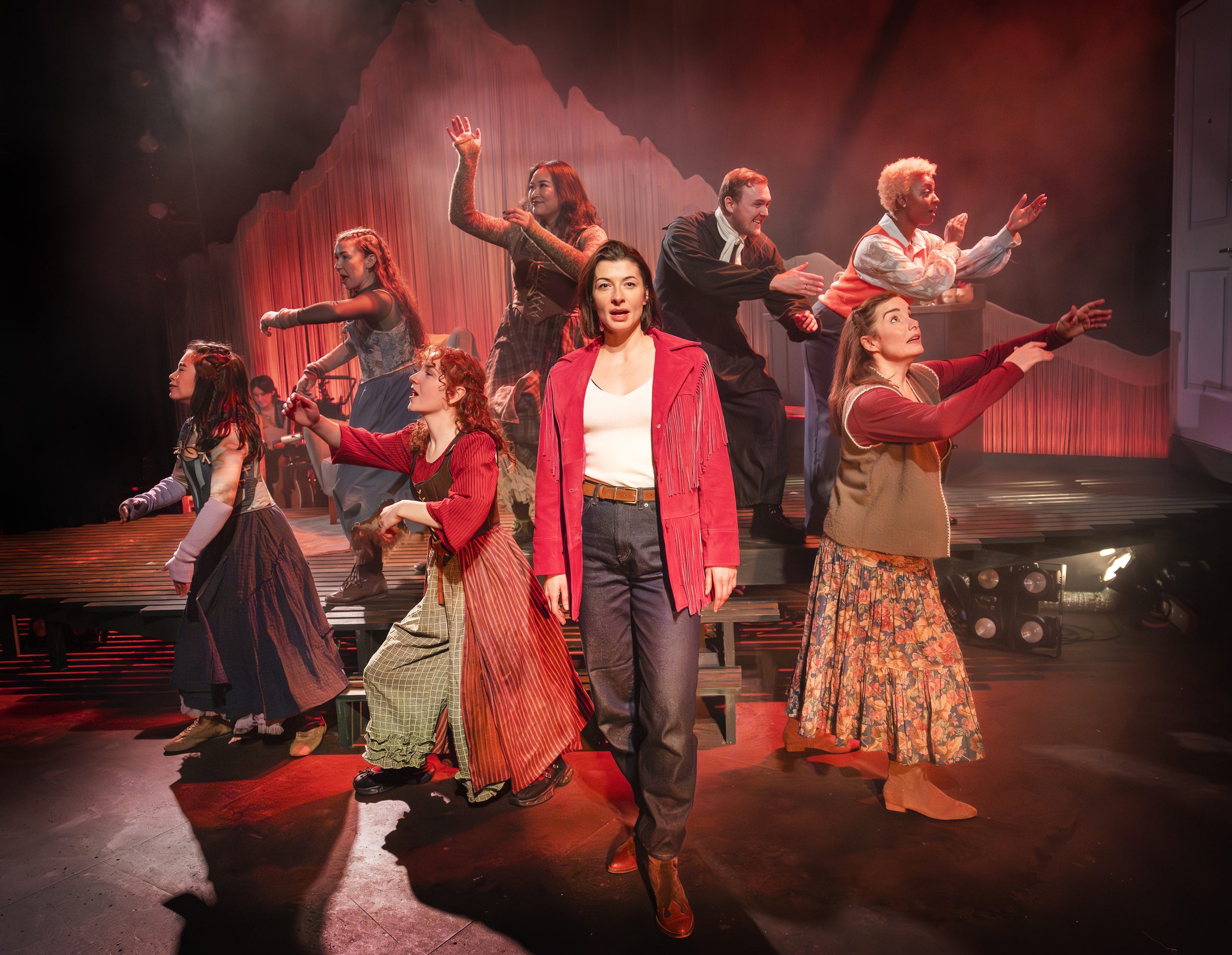 The opening number, simply titled ‘Prologue’, introduces us to Betty Carson, a strong West Virginian woman, played with warmth and heart by Olivier Award-winner Rebecca Trehearn. She tells us she comes from a long line of ballad singers, and that these songs travelled with her ancestors from Scotland, to Ireland, and eventually to the Appalachian Mountains. The lyrics speak of women bound by shared blood and names, carrying stories and songs across generations.
