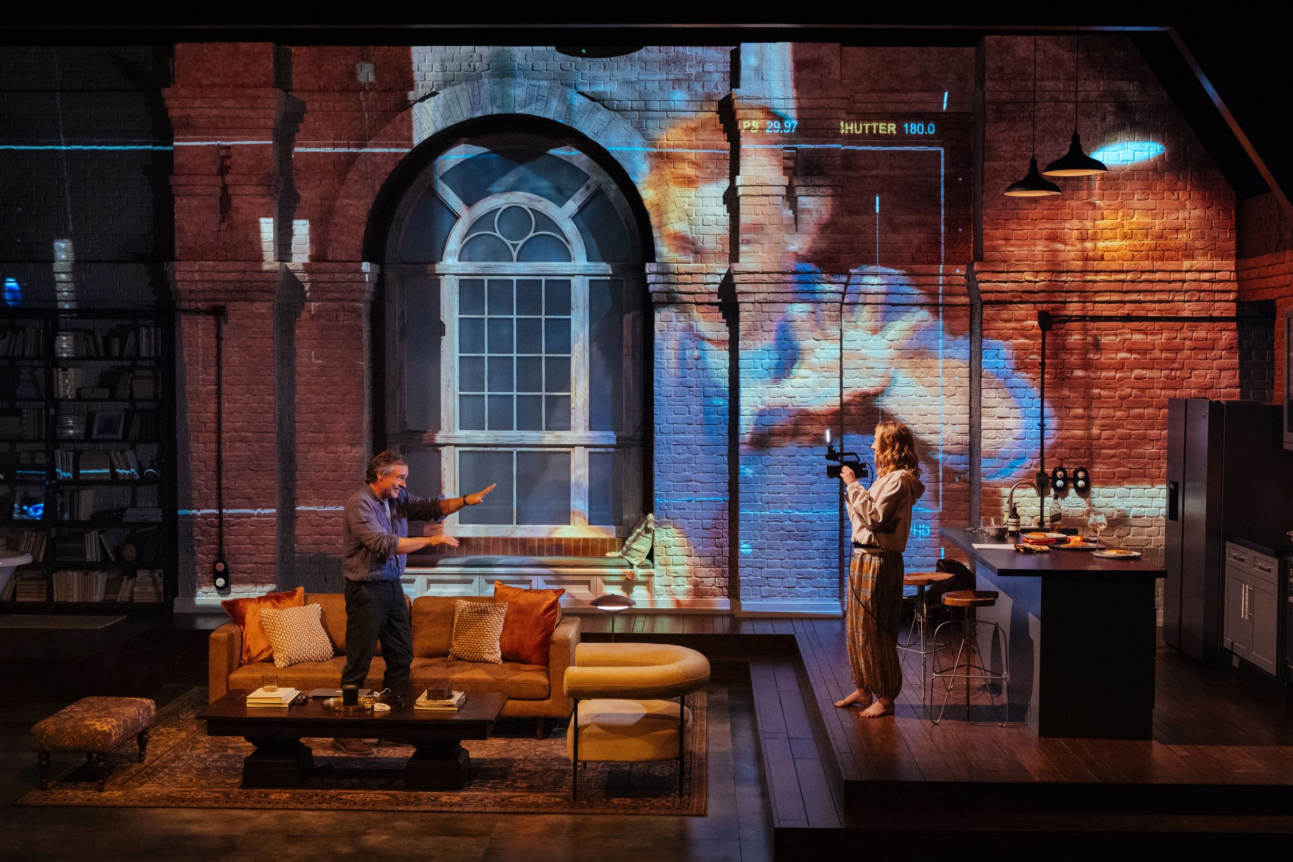 Visually, the production is at times brilliant. Set Designer Derek McLane’s “quiet luxury” apartment set, with its huge window and tasteful, yet impersonal decor, perfectly reflects Katya’s curated persona and is exactly the kind of apartment you might expect such an influencer to inhabit. The use of video projections (IDONTLOVEYOUANYMORE) and live camera work is particularly effective, brilliantly demonstrating the omnipresence of technology in Katya’s life and giving the audience a voyeuristic glimpse into her world. These moments, along with Ata Güner’s sound design, are some of the show’s most compelling.