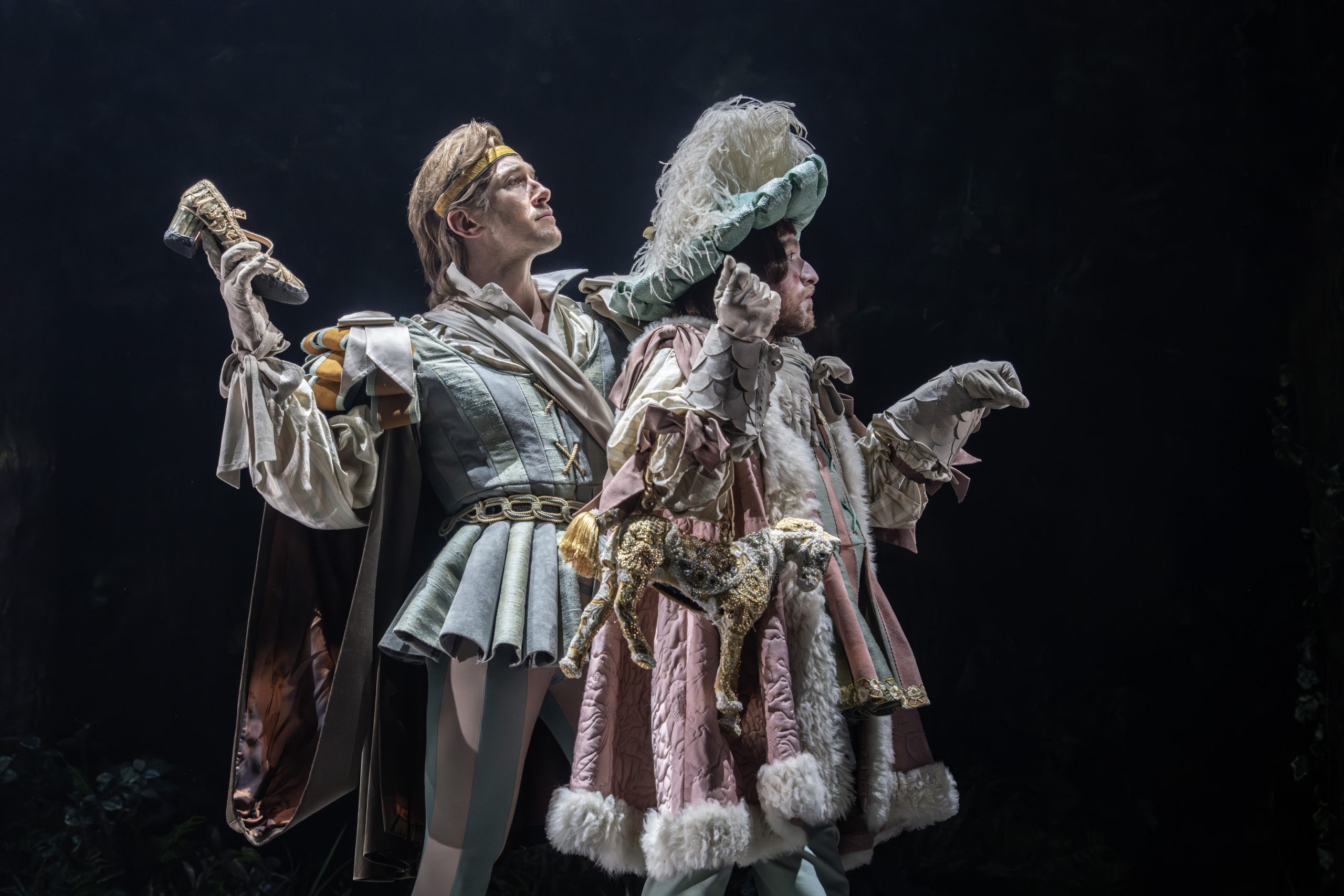 There’s a lovely early moment when Cinderella is told she has to separate lentils from ashes if she wants to go to the ball. Instead of literal birds, we see their shadows projected onto the backdrop as they ‘help’ her. It’s simple, theatrical, and quietly magical. Roland Horvath’s video design is used sparingly throughout, but when it shows up, it really earns its place.