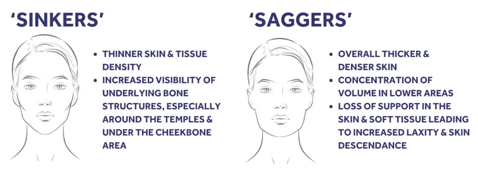 - Dull, fatigued skin that needs structural support rather than volume
