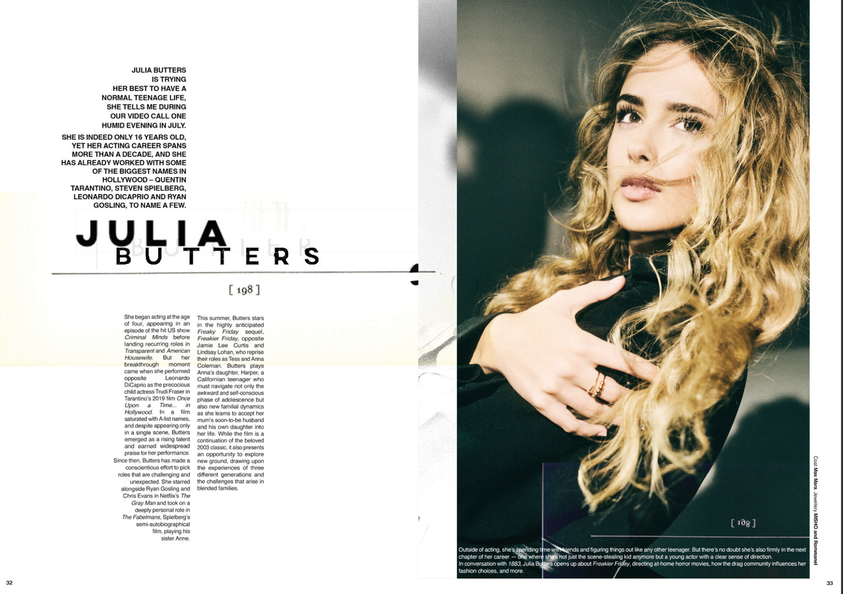 In our latest issue, Julia sits down with 1883 to talk about her role as Harper Coleman in Freakier Friday, directing at-home horror movies, her career so far, and more.