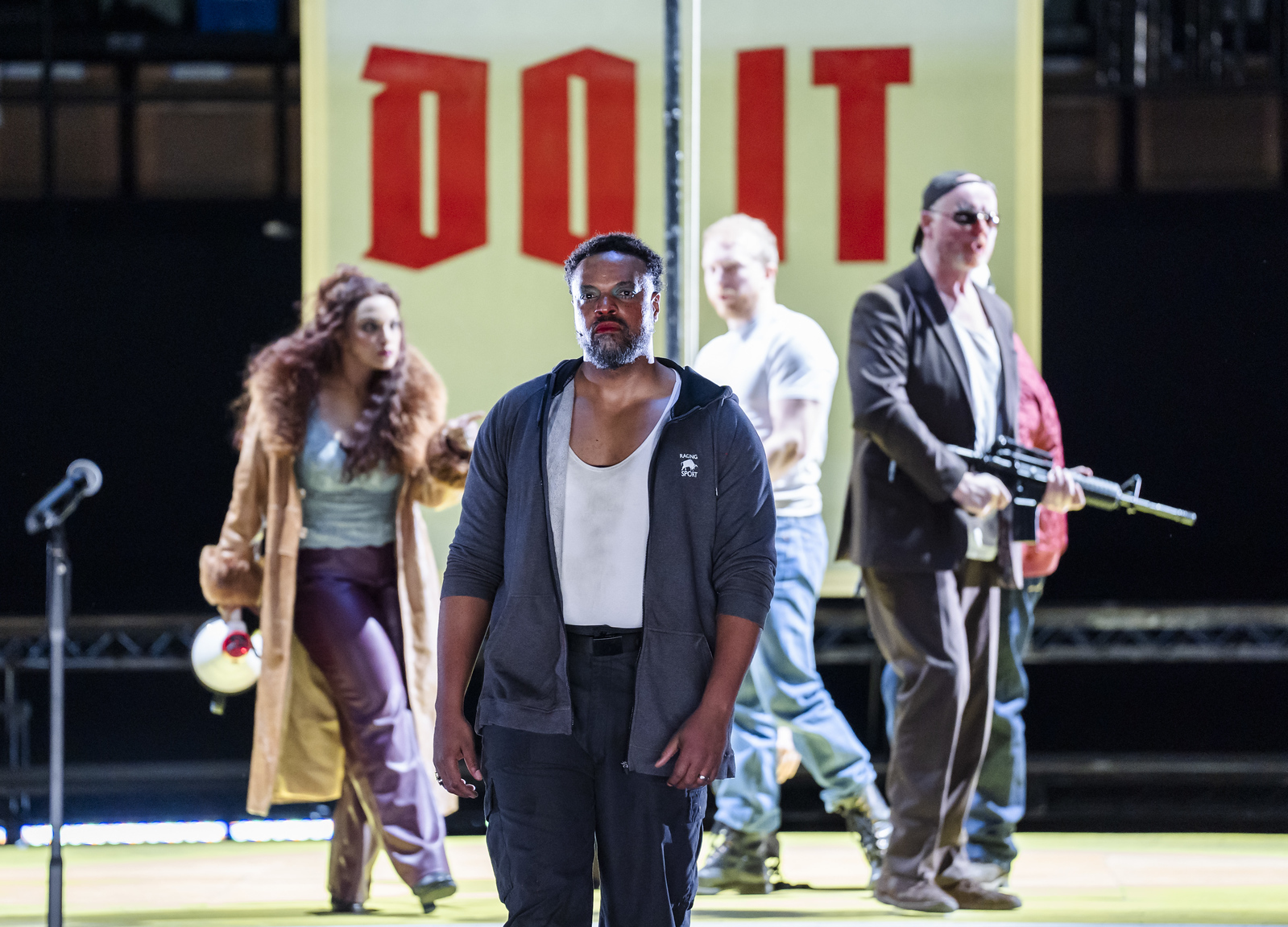 Jeremy Sams’s English translation is a little clunky at times but ensures that Brecht’s barbs land with contemporary clarity. When the citizens sing of eating, drinking, fighting and fucking as if these were constitutional rights, it feels uncomfortably familiar. The lumberjacks’ tragedies are rolled out with nary a note of sentimentality and harsh verbal brutality is only ever an aria away.