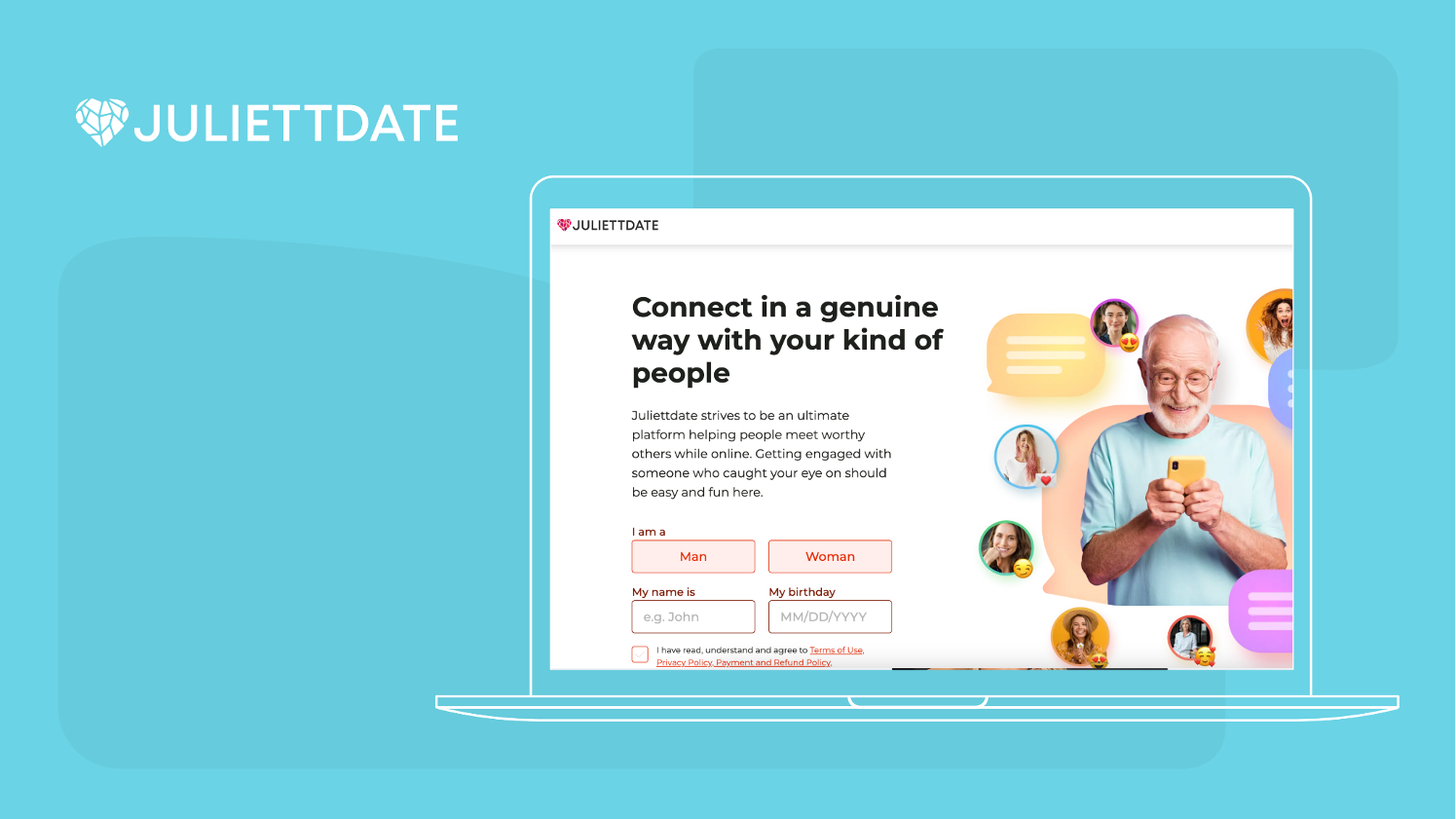 Juliettdate is a communication platform where users can find a friend or a soulmate. The website provides a space for meaningful conversations and the exchange of perspectives among people with different interests. Its main goal is to create an inclusive community for those who want to deepen their journey through strong dialogues.