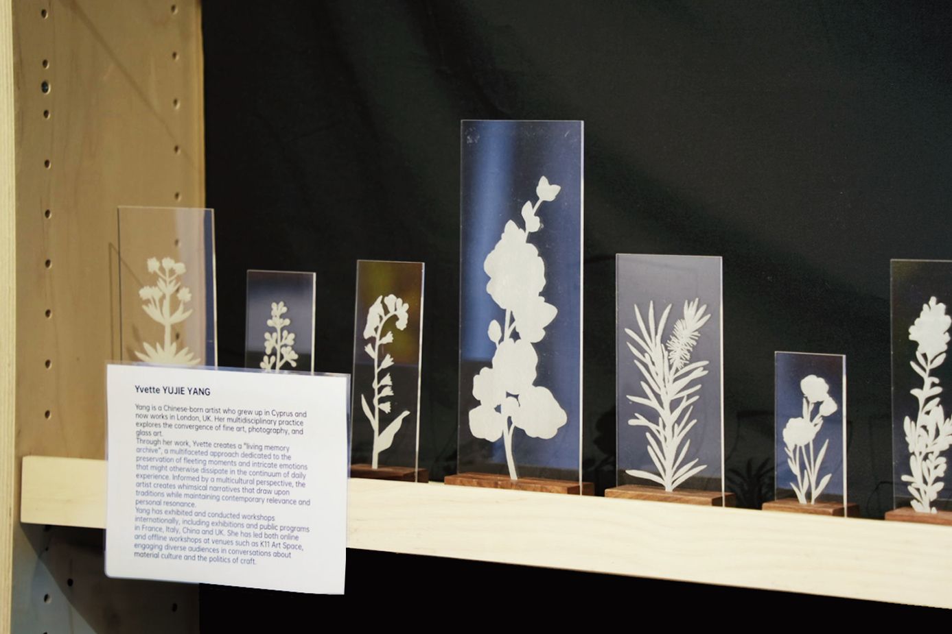 Yvette Yujie Yang’s Fragments answers through lampworked borosilicate glass. Yang creates a “living memory archive” of delicate botanical forms that preserve fleeting moments against daily erasure. This specimen-making becomes resistance against entropy, a human effort to hold what must disappear. Each translucent plant captures both nature’s form and our impulse to remember it. Perhaps this desperate effort to preserve what we cannot keep is where emotion lives most purely.