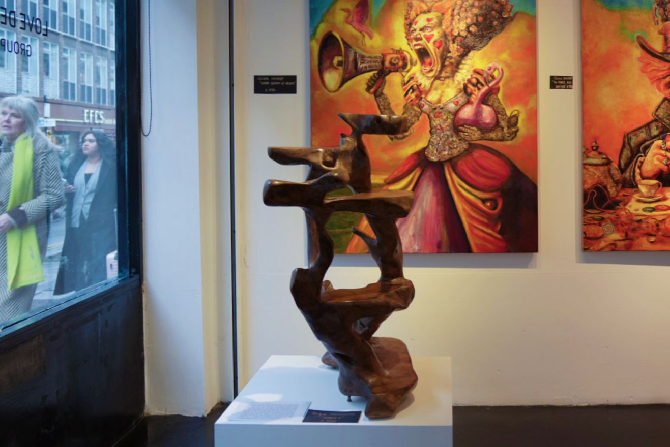 Nadya Hristakieva’s Roots embodies this expanded definition of connection. With a background bridging engineering, metaphysical science, and fine art, she constructs organic wooden forms that twist and interweave, suggesting the unseen networks that sustain all life. The sculpture asks whether we might extend the same vulnerability we offer other humans toward the earth itself.